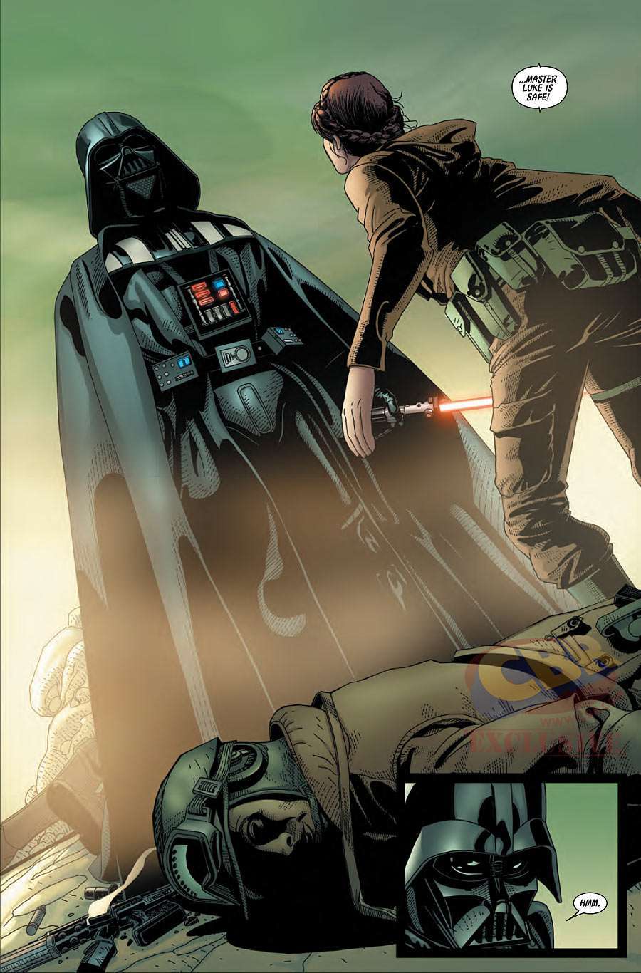Vader colpito ci costringe ad un momento di pausa dopo la grande azione della terza parte: molti dialoghi ma niente di memorabile, mentre dal punto di vista dell’azione siamo messi di fronte a due nuovi nemici (Krrsantan e Karbin) che si limitano a inserirsi nel combattimento, come per presentarsi e aumentare il climax verso il finale. Il confronto tra Vader e Leia non rimane impresso se non per qualche tavola graficamente bellissima.