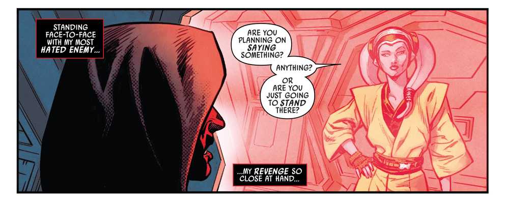 Già conosciamo Darth Maul nel suo periodo Clone Wars ma in questo volume lo vediamo per la prima volta fare affidamento sulle forze di altri individui mentre è ancora sotto l’influenza di Darth Sidious, quando è ancora un Sith a tutti gli effetti. Il personaggio si distoglie dall’idea che si tratti solo di un’arma nelle mano del futuro Imperatore, schierata in campo quando serve, e ci mostra un personaggio disposto a seguire un piano preciso e attendere il momento opportuno quando pure potrebbe lasciarsi prendere e chiudere la vicenda, seppur malamente, sul momento.