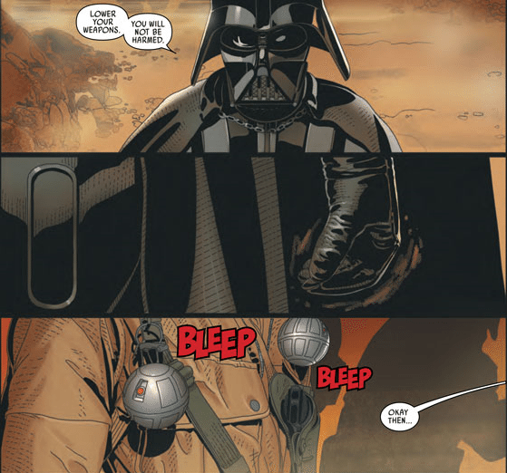 Sia la serie Star Wars che Darth Vader stavano vendendo benissimo e ricevendo ottimi riscontri, quindi aveva un senso fare un crossover in stile Marvel. E’ uno dei punti distintivi della Marvel Comics no? Inoltre, Kieron Gillen e io avevamo già collaborato per quanto riguarda la parte degli X-Men del Marvel Universe, dove c’è un grosso gioco di scambi tra le varie serie. Dunque l’idea di fare un crossover con Star Wars è stata molto naturale. L’idea è nata quando eravamo a cena a New York con uno dei nostri editor. Tutto è iniziato con questa immagine di Vader, da solo, contro un esercito di ribelli, senza nient’altro che la sua spada laser. Kiero e io eravamo davvero molto eccitati all’idea di mostrare Vader all’apice del suo potere, e credo che ci siamo riusciti.