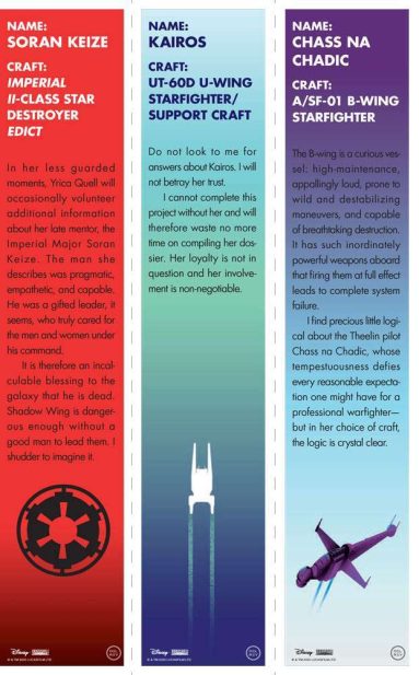 L’illustrazione di Keize, disponibile nell’edizione esclusiva per Barnes & Nobles di Shadow Fall, secondo romanzo della Trilogia Alphabet Squadron, sarà accompagnato anche da tre segnalibri esclusivi con i dossier di tre personaggi del libro: Chass Na Chadic, Kairos e lo stesso Soran Keize.