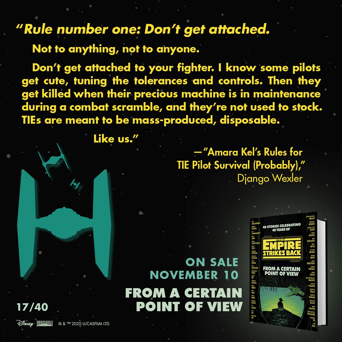 17. Amara Kel’s Rules for TIE Pilot Survival (Probably), Django Wexler – I piloti di caccia TIE non hanno carriere che durano a lungo. Ma se seguirete le regole di Amara Kel sopravviverete (forse).