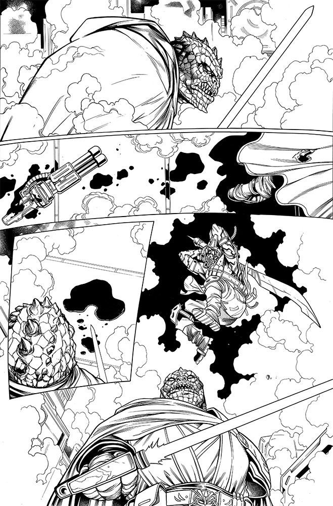 “Il secondo numero vede un incrociatore danneggiato alla deriva nello spazio profondo, devastato da un attacco Nihil” spiega lo scrittore Cavan Scott. “Sskeer comanda la missione che vede la squadra attraversare corridoi pieni di fumo.” Questa volta il maestro Jedi Sskeer e la sua padawan Keeve Trennis non sono soli.