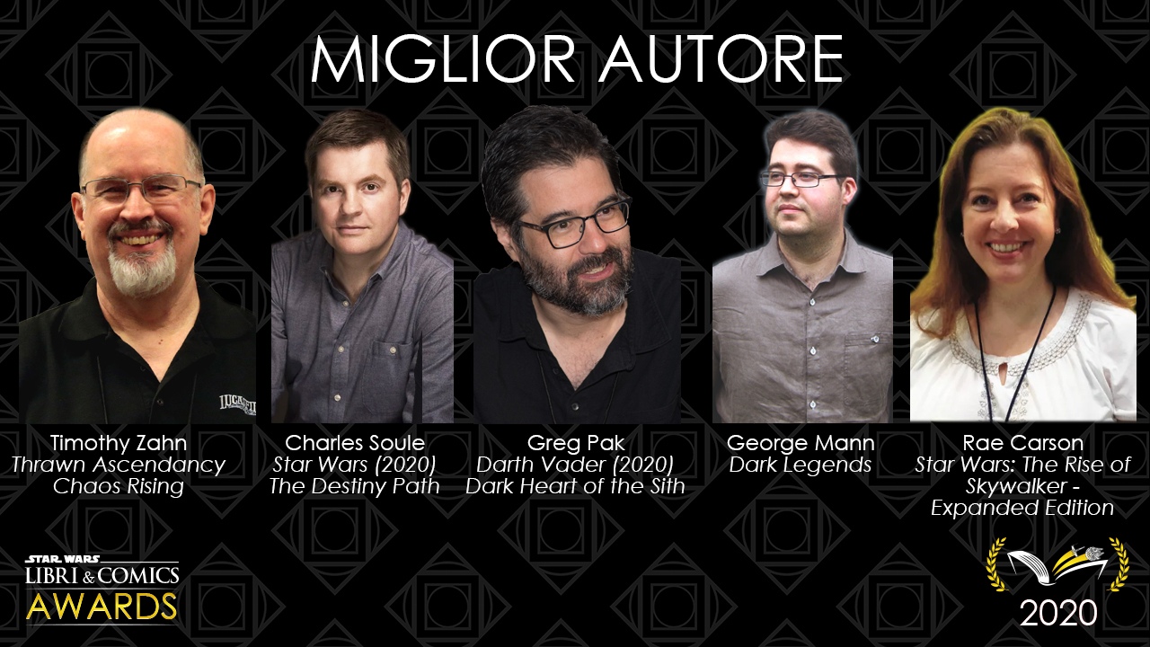 Siamo felici di annunciare la nostra nuova iniziativa: gli Star Wars Libri & Comics Awards, i nostri nuovi premi annuali assegnati alle migliori produzioni letterarie di Star Wars dell’anno che si sta per concludere, un modo per noi della redazione e per voi lettori di guardare ai mesi trascorsi e tirare le somme di questo anno. Sarà possibile effettuare le votazioni attraverso un Google Form in questa pagina da oggi, 6 dicembre 2020, fino al 6 gennaio