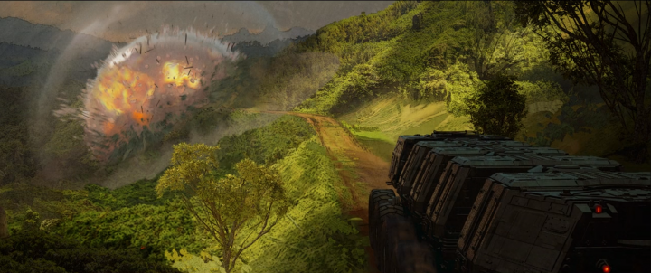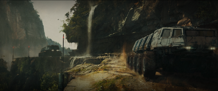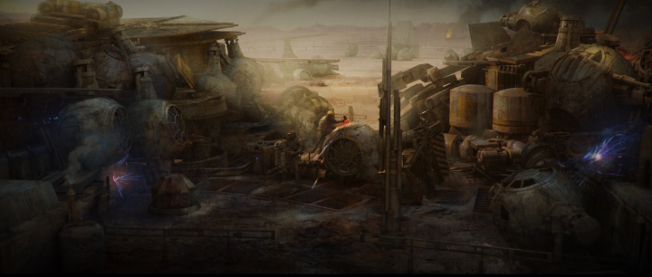 Terminata la riunione tattica, i cinque si dividono: Boba torna alla Slave I, tenendola pronta per la fuga; Fennec raggiunge una posizione di tiro che le conceda una buona visuale del tetto; Mayfeld, Din e Cara, invece, si dirigono verso l’imboccatura del tunnel T-12 per assaltare uno dei giganteschi trasporti Juggernaut, probabili evoluzioni del carro HCVw A9 turbo visto in Rebel Rising e in Rogue One – A Star Wars Story. Messi fuori combattimento i due autieri, Mayfeld e Din vi si sostituiscono indossando le rispettive uniformi e ripartono verso la raffineria, mentre Cara raggiunge Fennec per fornire fuoco di copertura. Si noti, in questo caso, l’incredibile somiglianza tra i sistemi di comunicazione del Juggernaut e quelli della Morte Nera, partecipi di una celeberrima conversazione noiosa in Episodio IV – Una Nuova Speranza. Impossessatisi del mezzo, i due si dirigono verso la raffineria, facendo due inquietanti scoperte: la presenza di numerosi Juggernaut sventrati a bordo strada e l’esistenza di villaggi locali in condizioni particolarmente degradate.