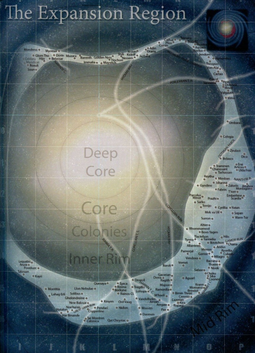 Sfortunata, abbandonata, maledetta: questi sono solo alcuni aggettivi usati per descrivere la Regione di Espansione e la sua spesso tragica storia, caratterizzata da crisi e conflitti tra corporazioni e gilde commerciali, con il filo conduttore della depredazione delle risorse per alimentare l’economia del Nucleo e delle Colonie.