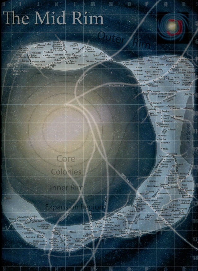 I territori dell’Orlo Esterno costituiscono la regione più vasta della galassia, nonché la meno esplorata, e la più variegata dal punto di vista delle popolazioni e delle culture. La lontananza dai poteri centrali si traduce in maggior libertà ma ha contribuito alla nascita di veri e propri covi di feccia e malvagità dove regnano illegalità, crimini e violenze.