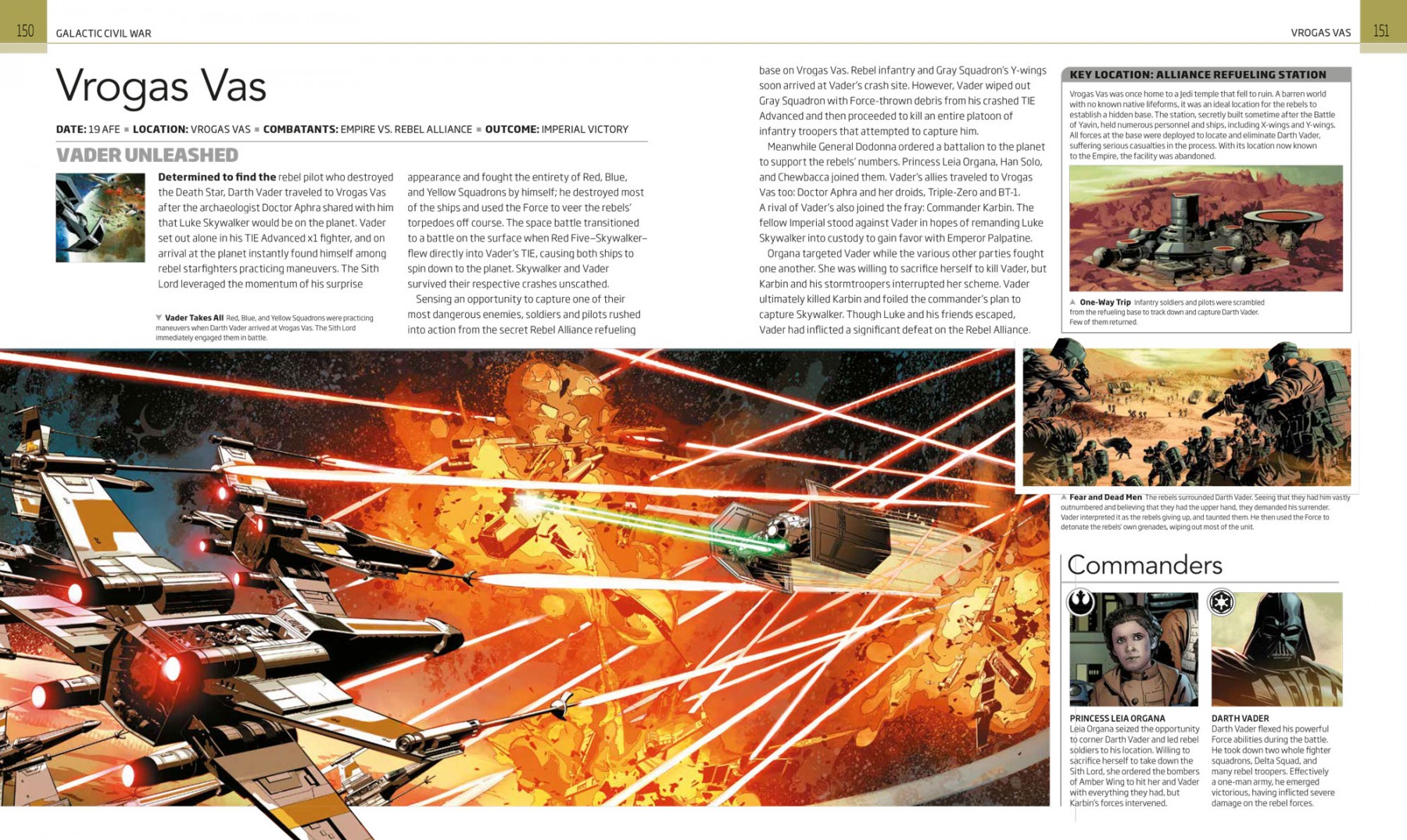 Nella galleria sottostante vengono presentate le pagine del volume rilasciate in anteprima: tra i conflitti che verranno analizzati è possibile notare anche la Battaglia di Vrogas Vas, uno degli elementi centrali del crossover a fumetti Vader Colpito