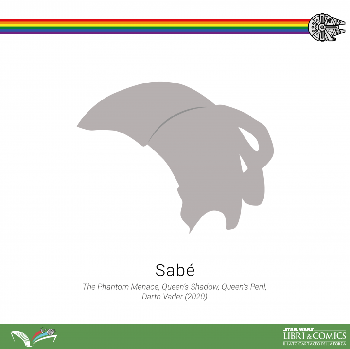 Sabé è comparsa per la prima volta nel film Episodio I – La Minaccia Fantasma e, successivamente, nei romanzi Queen’s Shadow e Queen’s Peril e nella serie regolare Darth Vader (2020).