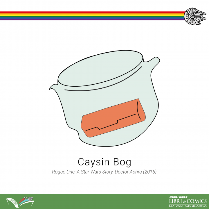 Caysin Bog è comparso per la prima volta nel film Rogue One – A Star Wars Story e, successivamente, nella serie regolare Dottoressa Aphra (2016).