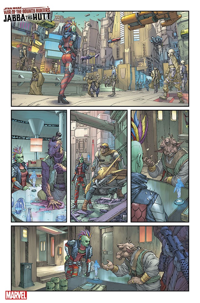 Nella giornata di ieri su StarWars.com è stata rivelata un’anteprima del one-shot di War of The Bounty Hunters relativo a Jabba The Hutt! Le novità non sono esaurite qui però: protagonista di questo numero sarà infatti Deva Lompop, una nuova cacciatrice di taglie risalente all’epoca dell’Alta Repubblica!