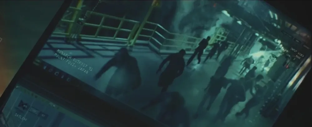 I titani si risvegliano in tutto il mondo: sugli schermi della base operativa della Monarch, Castle Bravo, è possibile scorgere la loro collocazione originaria grazie alla mappa con segnalati i vari avamposti di contenimento e monitoraggio costruiti proprio dalla Monarch e seguirne poi lo spostamento in seguito al richiamo di Ghidorah.