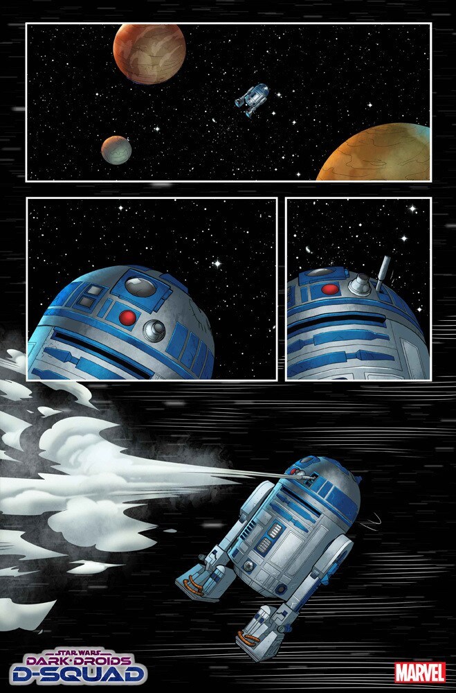 La miniserie vedrà R2-D2 combattere la nuova minaccia horror vista in Dark Droids, chiamata Scourge, che corrompe l’animo dei droidi. L’astromecca riattiverà la sua crew, già vista in The Clone Wars, con alcuni cambiamenti rispetto agli eventi della serie animata; avremo infatti IG-88, 4-LOM, BT-1 e triplo 0, oltre al droide meccanico WAC-47.