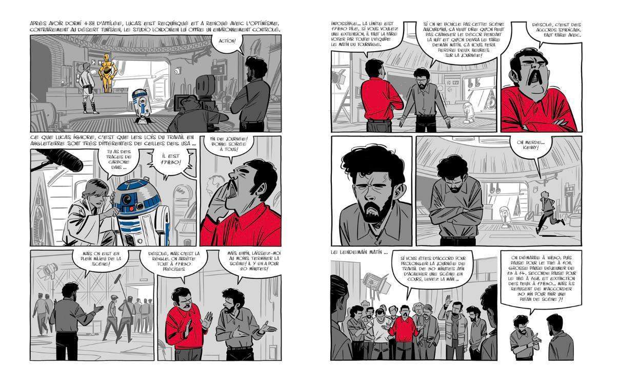 La tavola pubblicata da Bao è tratta dal volume Les Guerres de Lucas (Lucas’ Wars) illustrato da Renaud Roche e scritto da Laurent Hopman. Si tratta di una graphic novel, ispirata alla storia di George Lucas e alla creazione dell’universo di Guerre Stellari.
