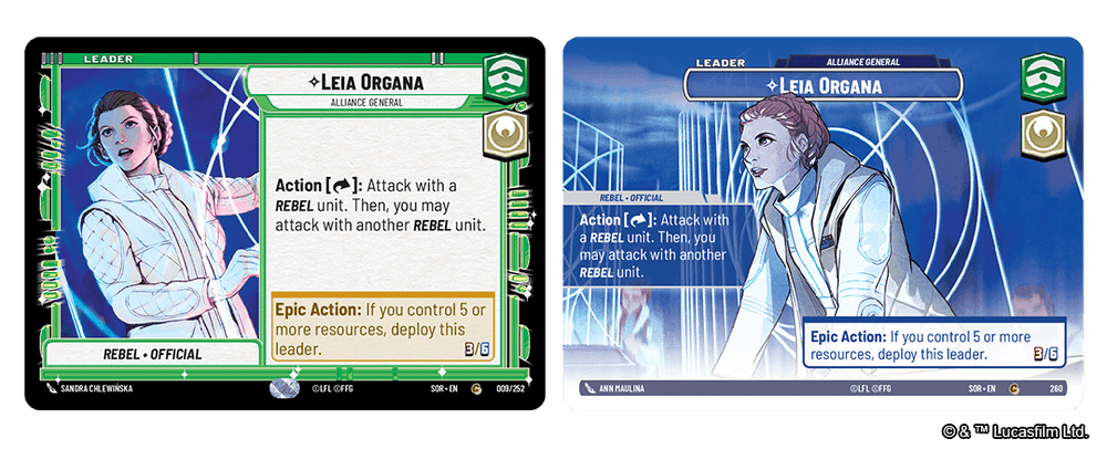 Una partita a Star Wars Unlimited vede contrapporsi due leader con le rispettive basi; questa coppia leader-base definisce le affiliazioni del mazzo.