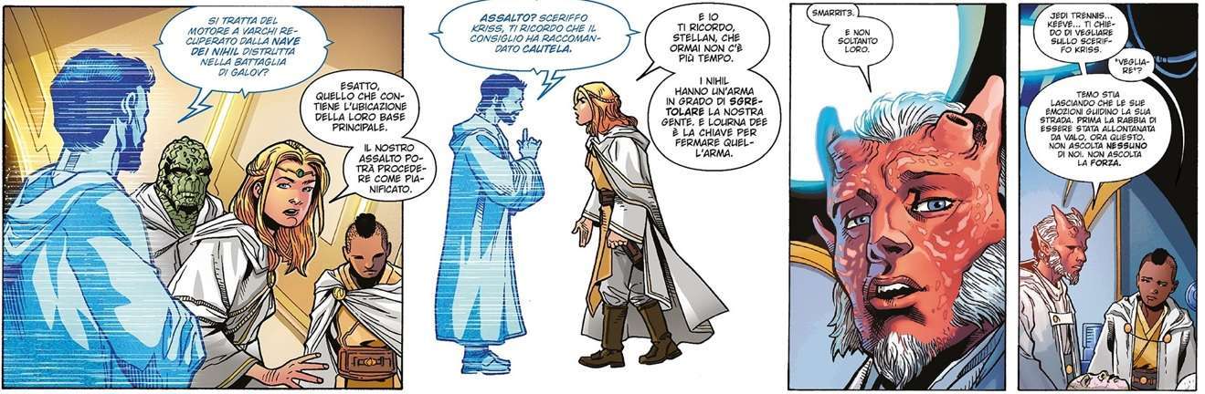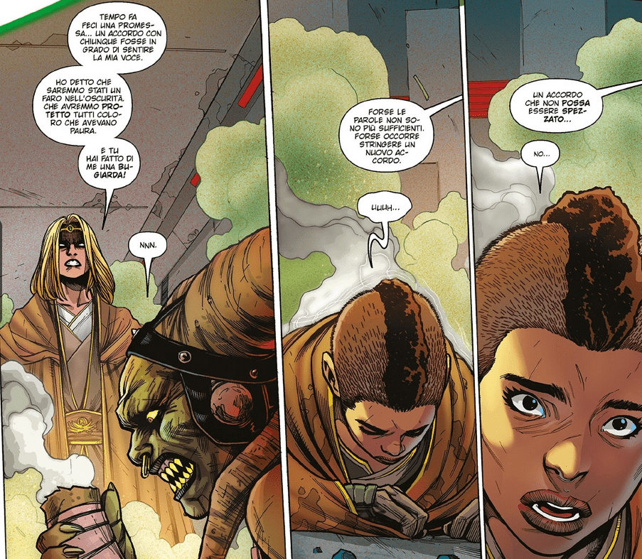 Proprio questa rinnovata consapevolezza, e la conoscenza che anche Elzar, su Coruscant, sta affrontando le sue stesse paure ma continuando comunque a lavorare per salvare lei e tutti gli altri intrappolati all’interno del Murotempesta, spingeranno nuovamente Avar a combattere e a desiderare di tornare a casa, all’Ordine a cui appartiene.