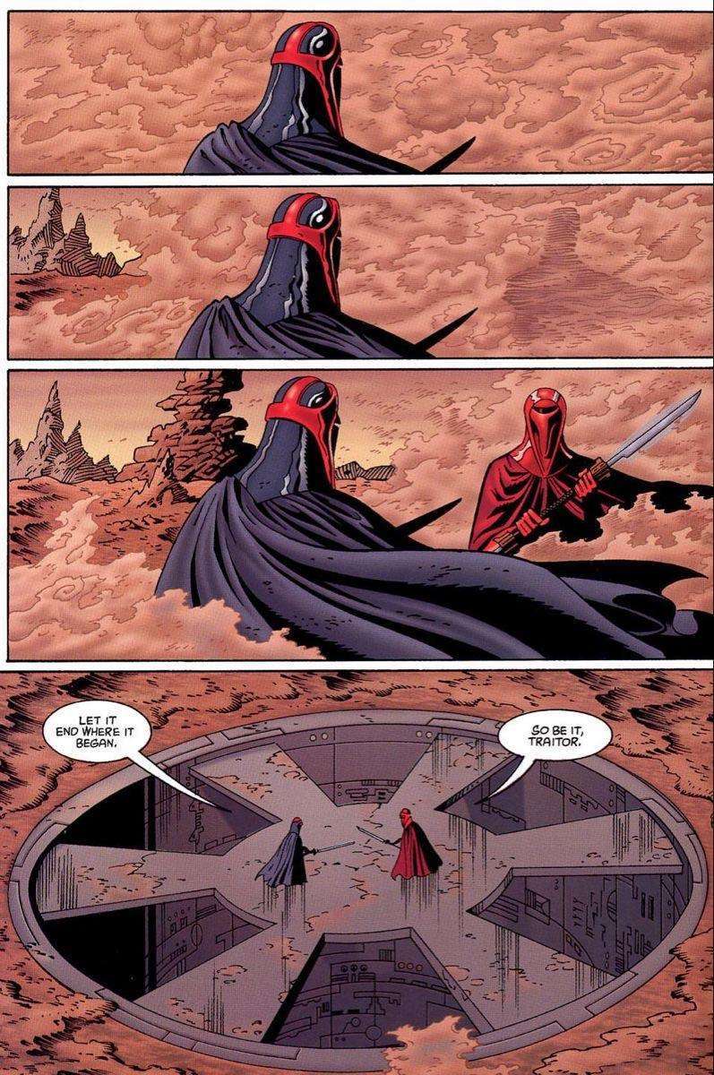 Protagonista del volume è l’ex membro della Guardia Reale dell’Imperatore, i misteriosi e letali individui dalle vesti cremisi visti per la prima volta ne Il Ritorno dello Jedi.