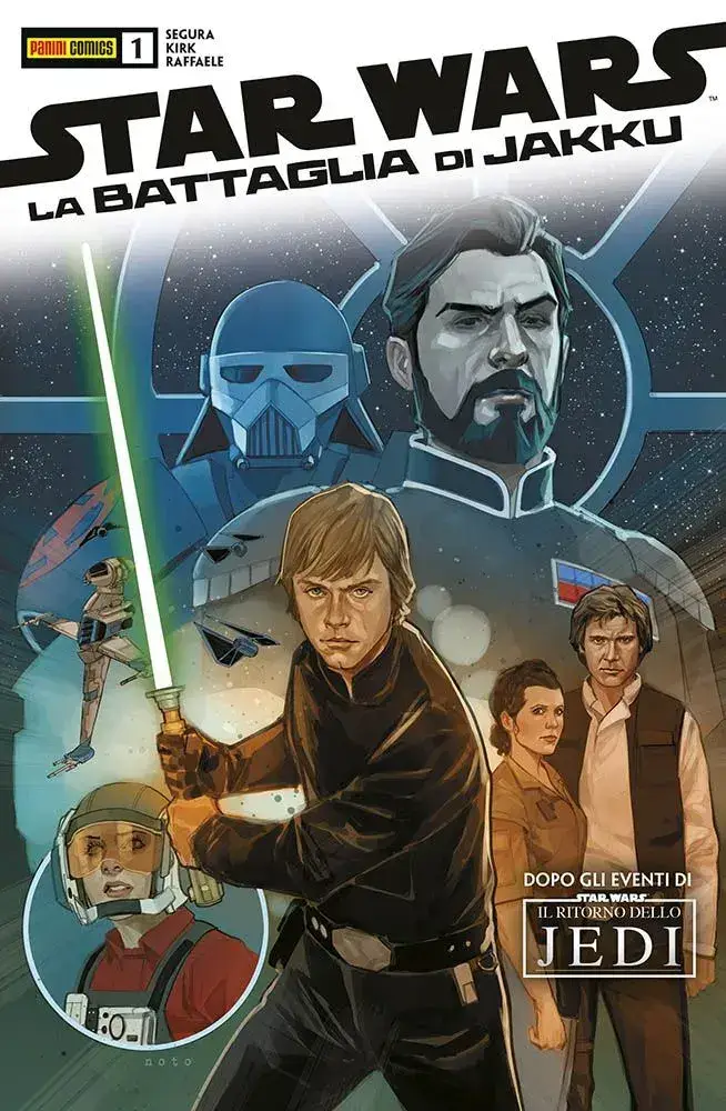 Star Wars: La Battaglia di Jakku è una maxi serie di 12 numeri scritta da Alex Segura, illustrata da Leonard Kirk e Stefano Raffaele (artisti), e Rachelle Rosenberg con Alex Sinclair (coloristi), Joe Caramagna è il letterista. La copertina, che potete vedere qui sotto, è opera di Phil Noto.