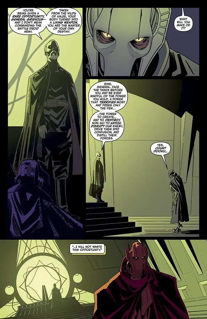 Sempre per Dark Horse, rivelate anche le prime tavole del one-shot dedicato al Generale Grievous, scritto da Michael Moreci con i disegni di Caio Felipe.