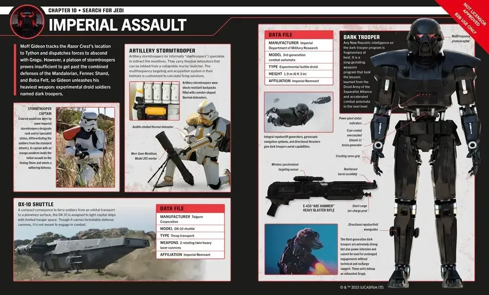 Sono anche state rivelate quattro nuove pagine della Visual Guide di The Mandalorian, in uscita il prossimo 2 Aprile 2026 (PREORDINA QUI). Come confermato, la guida includerà anche alcuni dettagli tratti da The Mandalorian & Grogu, in uscita dal 20 maggio 2026!