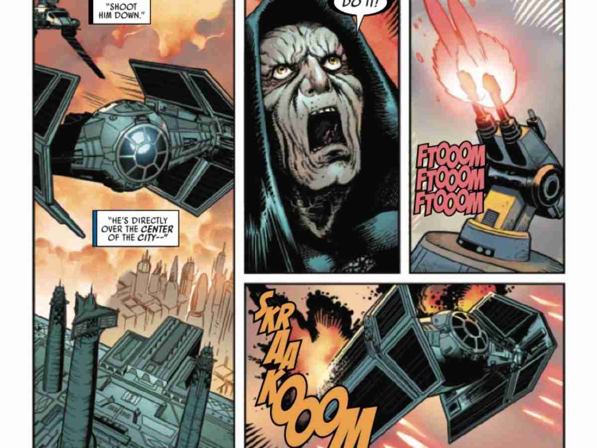 Il caccia TIE x1 di Vader viene abbattuto su Coruscant tentando di raggiungere il Centro Imperiale.