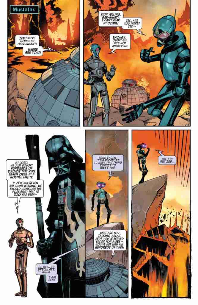 L’avventura prosegue con la lotta contro la minaccia che ha infettato una vasta gamma di droidi, rivoltatisi contro i ranghi imperiali e poi contro Vader, che però è pronto a rispondere più forte che mai. Il volume dall’eufonico titolo in originale Dark Droids arriva dopo Forza Incontrollata. Si sentono ancora gli effetti di questo ultimo arco nel fatto che Vader deve ancora riprendere il pieno controllo del potere della Forza.