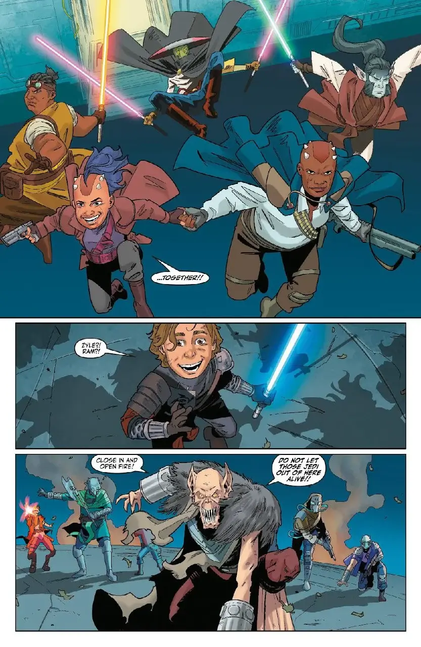 Per la gioia di Lula, tuttavia, anche il suo vecchio Maestro Jedi, Kantam Sy, personaggio che abbiamo potuto apprezzare soprattutto in Orizzonte di Mezzanotte, riuscirà a partecipare alle celebrazioni. Essendosi liberatə in tempo da una negoziazione su Ferrix.