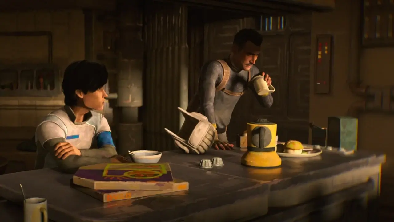 Sempre a Janix City, Lawson torna a casa. Una volta varcata la porta lo vediamo incapare in un copricapo molto simile a quello indossato da Omega in The Bad Batch. Si tratta di un elmo da botekin, sport praticato dal figlio, Rylee. Mentre i due parlano, scopriamo come la madre del ragazzo non viva con loro, ne ignoriamo, tuttavia, i motivi. L’unica cosa chiara è come Brander appaia un padre totalmente assente, focalizzato solo e soltanto sul proprio lavoro.