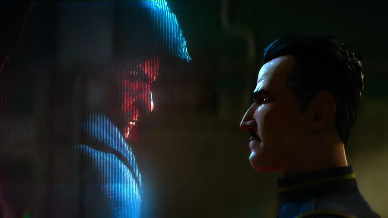 Interrotto poi da Kast, Maul lascia la giovane, dirigendosi verso l’obiettivo fornito da Vario. L’astronave Pyke viene dirottata grazie a Spybot e fin da questa prima scena, così come già dai trailer, notiamo come i Pyke appaiano in una versione a metà tra quelli animati di The Clone Wars e quelli live action di The Book of Boba Fett e Solo – A Star Wars Story. Spybot fa atterrare la nave in mezzo ai boschi di Janix e, per quanto ci possano provare, i Pyke non possono nulla contro la furia di Maul. In ultima battuta, poco prima di essere eliminato, il Pyke conferma l’identità del proprio superiore: Marg Krim, lo stesso Krim apparso nella precedente serie animata.