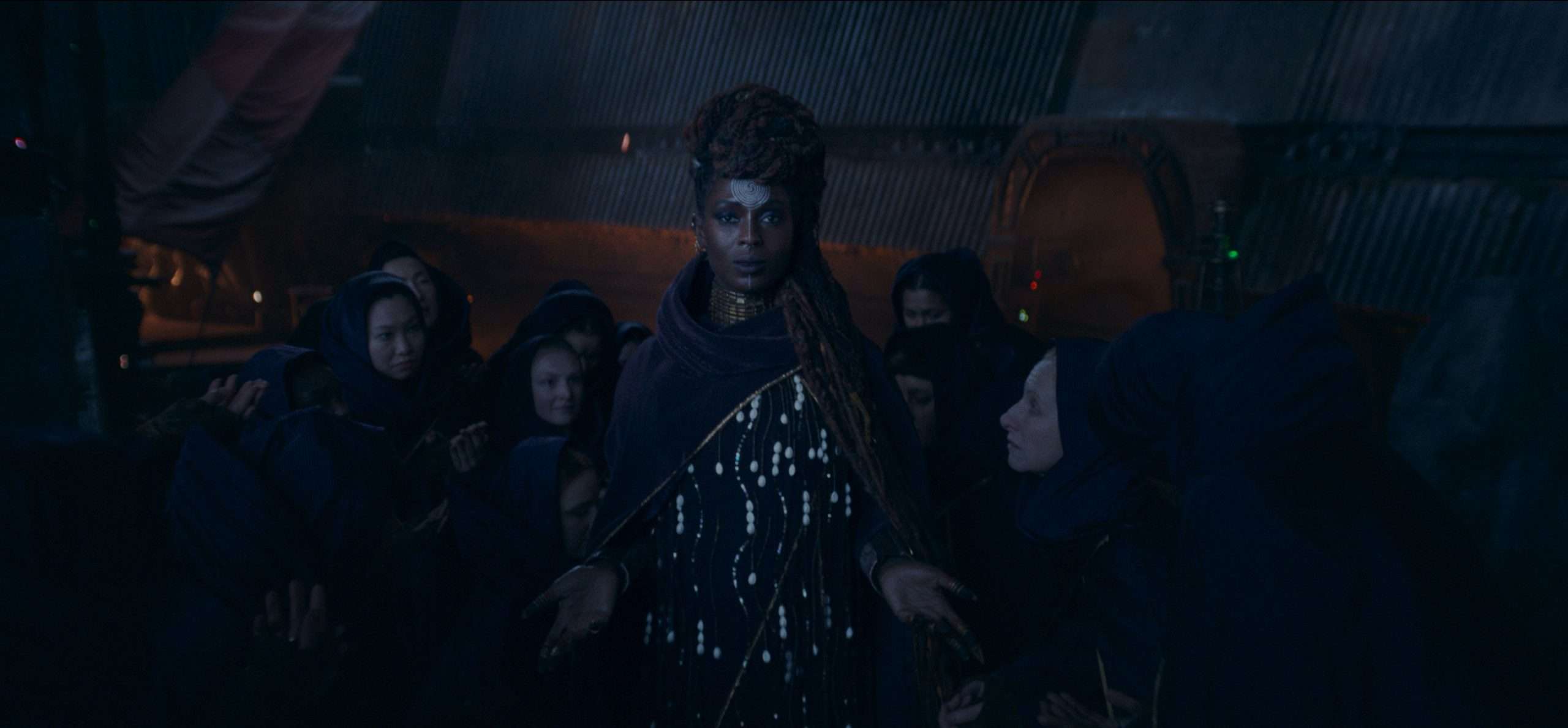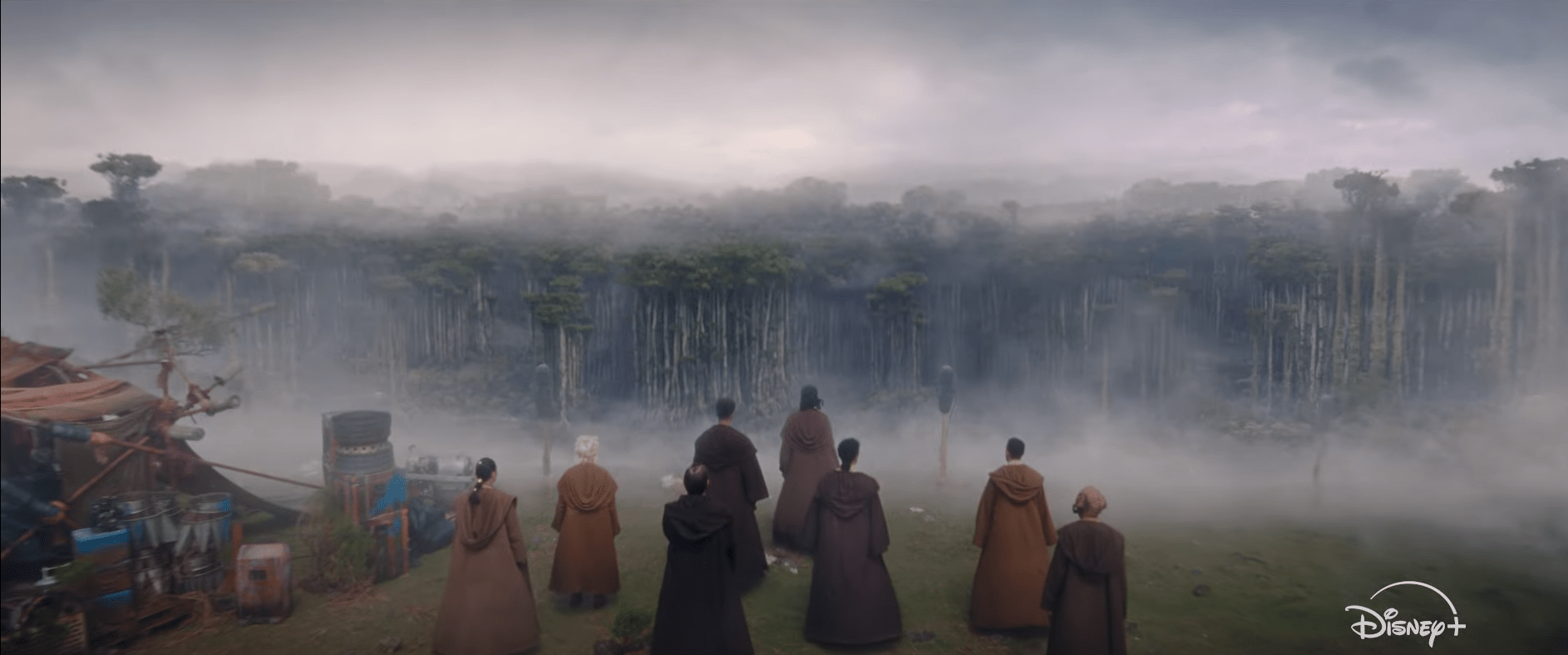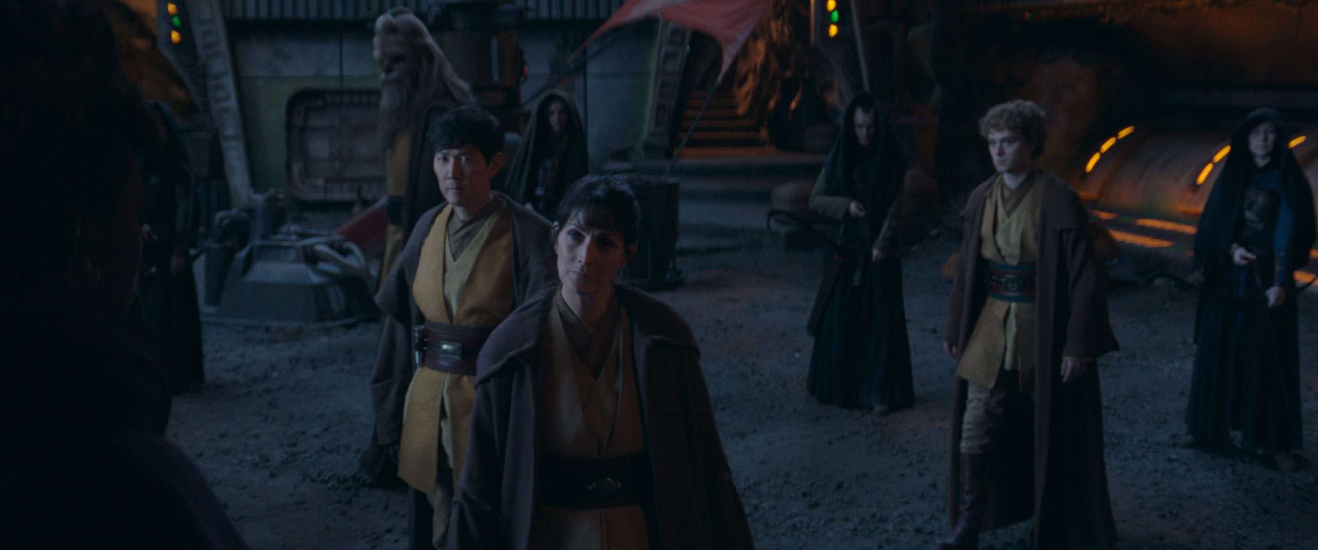 Rapidamente appaiono poi numerose scene: Vernestra spalanca un portone, probabilmente entrando nella sala di addestramento su Coruscant, vista a inizio trailer. Appare brevemente Qimir, il contrabbandiere interpretato da Manny Jacinto, intento a osservare intensamente qualcosa che sta avvenendo fuori dall’inquadratura. Vediamo in ultimo 4 Jedi: Kelnacca, il giovane Torbin, Padawan interpretato da Dean-Charles Chapman,oltre ai soliti Sol e Indara, essere circondati da un gruppo di streghe. Si tratta della setta guidata da Madre Aniseya, interpretata da Jodie Turner-Smith.