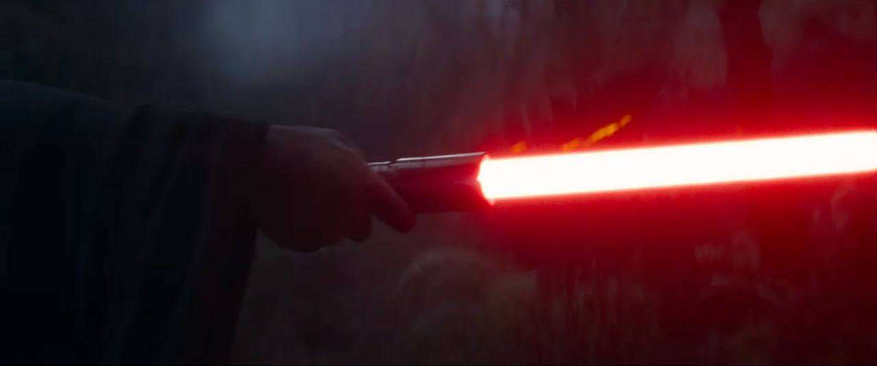 A poco servono le spade di luce, però, i Jedi vengono rapidamente sbalzati indietro da una spinta della Forza di enorme potenza. Nella scena appare anche, solo tramite la propria mano, l’ignoto proprietario della lama color cremisi.