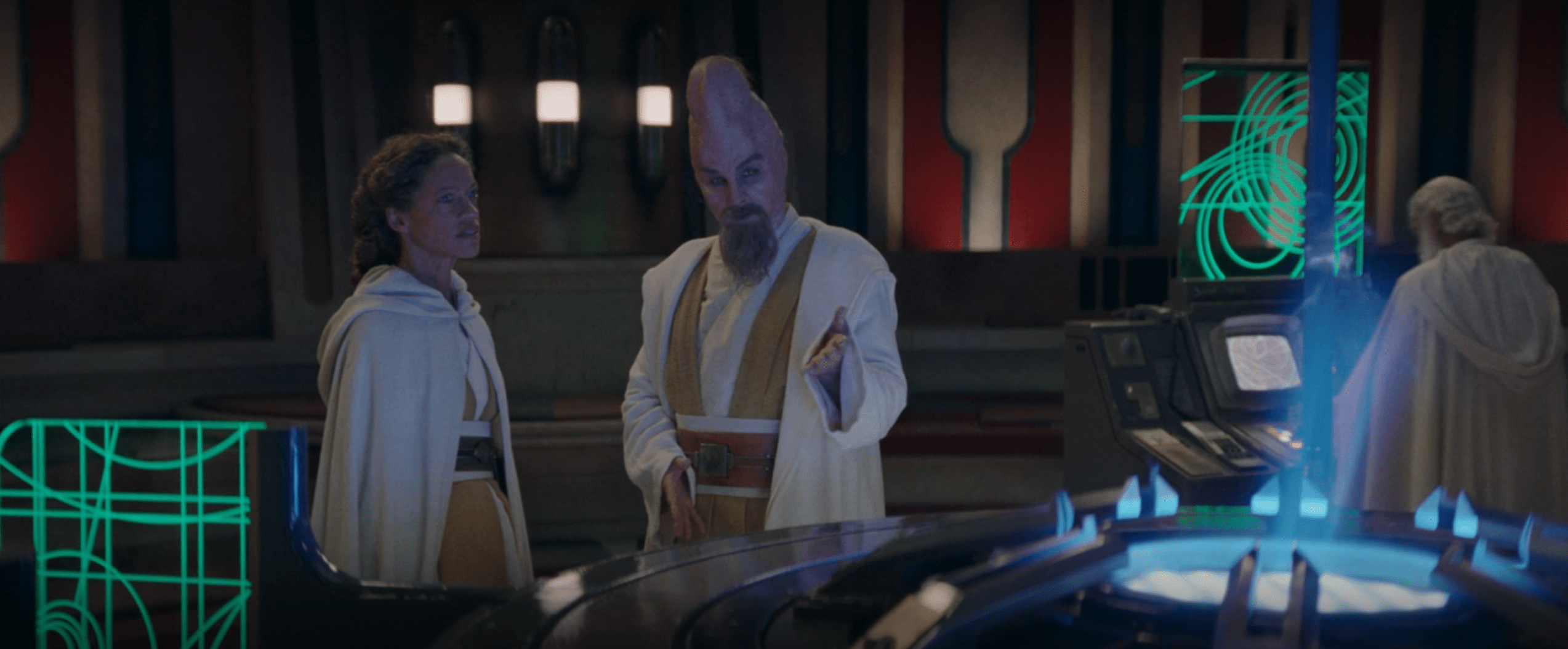 Di nuovo su Coruscant, ci troviamo in una sala tattica del Tempio Jedi. Numerosi sono i Maestri Jedi che discutono sul da farsi, analizzando le immagini di Mae fornite da Sol. Trai Jedi spiccano, oltre a Sol e Vernestra, anche la Maestra Holden (Indra Ovè) e inaspettatamente il Maestro Ki-Adi-Mundi (Derek Arnold), il Jedi Cereano visto nella Trilogia Prequel. Il timore dei Maestri Jedi è che, vista l’ignota identità del Maestro, possa trattarsi di un ordine scismatico, di cosa si tratti esattamente resta tuttavia un mistero.