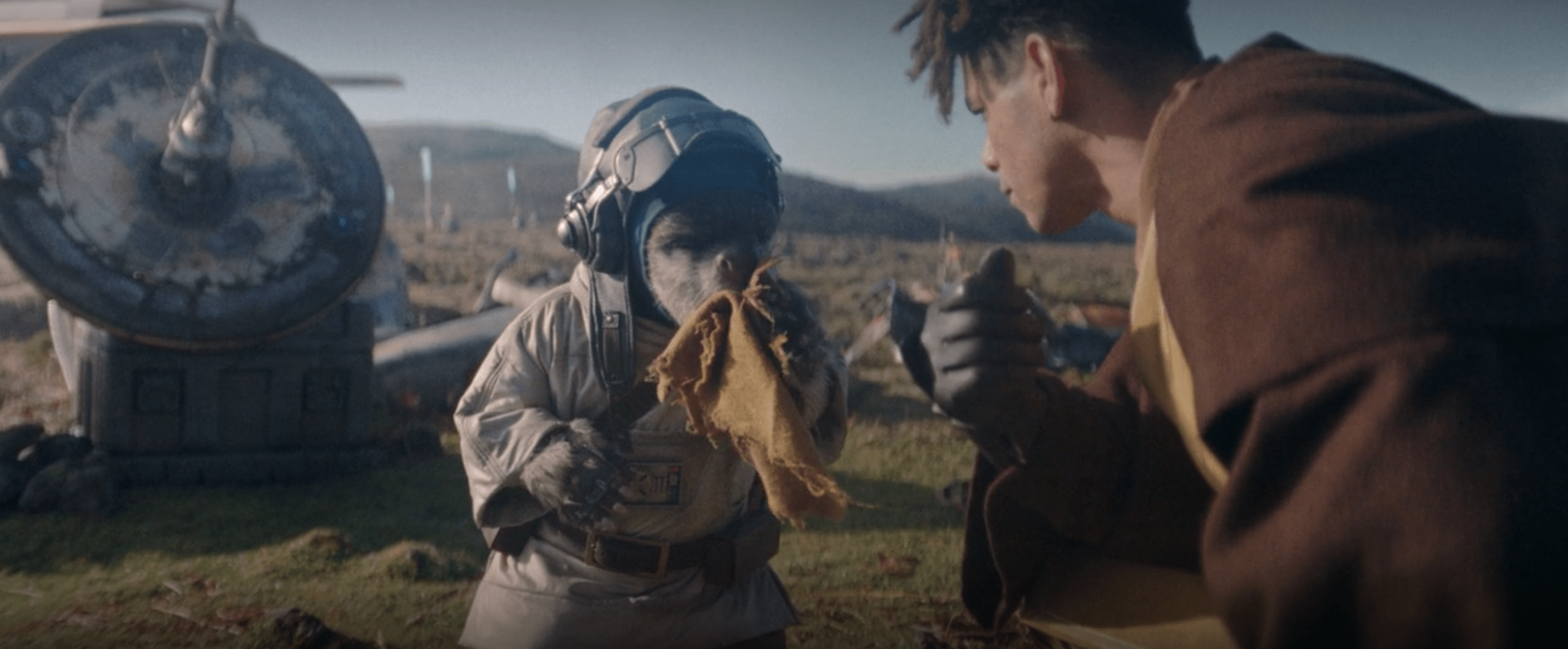Nei pressi della capanna di Kelnacca, Mae e Bazil si incontrano e il Tynnak grida chiedendo l’aiuto dei più distanti Jedi. Mae, in fuga, riesce a raggiungere rapidamente il relitto e, una volta entrata, trova Kelnacca seduto al tavolo visto all’inizio della puntata. Ciò che la ragazza scopre con orrore però, è che il Wookie è già morto, ucciso da un netto fendente di Spada Laser sul ventre peloso.