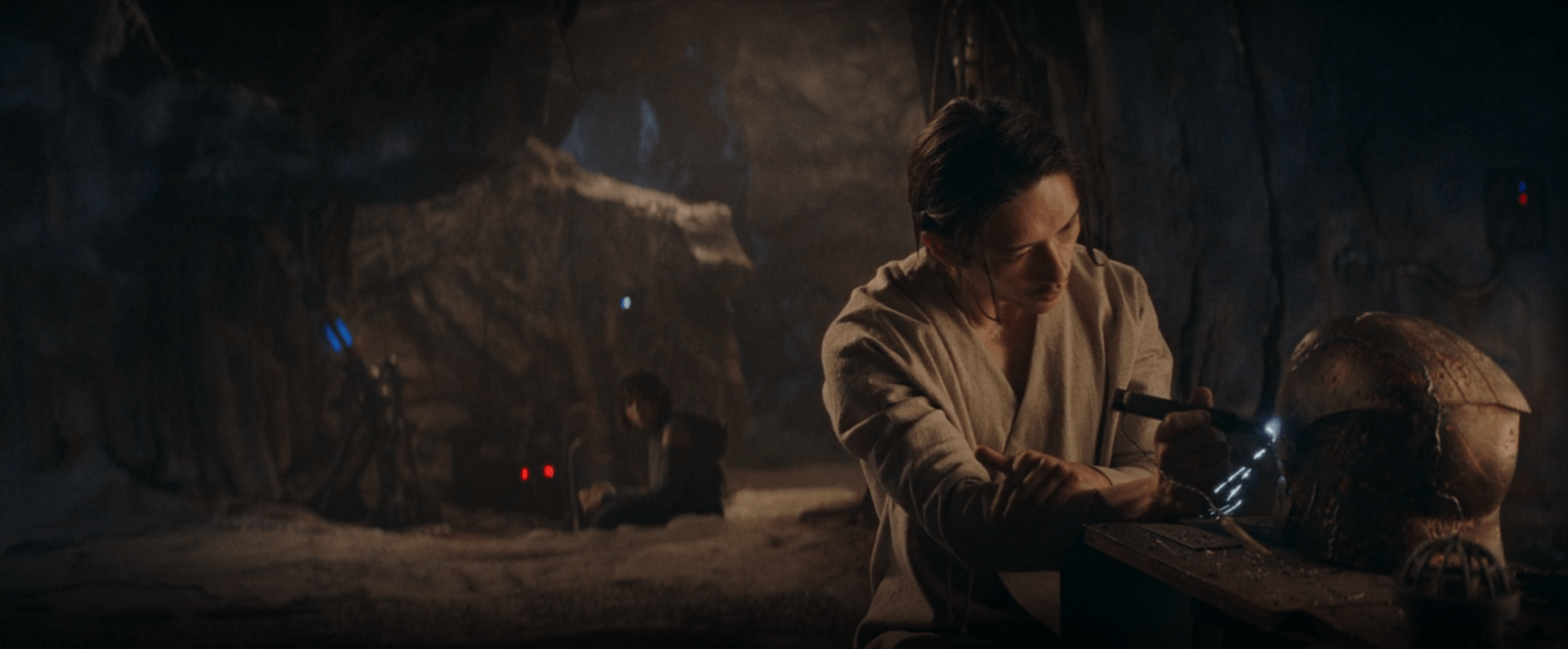 Sul pianeta misterioso, invece, vediamo Qimir aggiustare l’elmo, infatti, per quanto potenti siano le abilità del Cortosis, non si tratta di un metallo particolarmente resistente agli urti. Il Sith rivela poi a Osha che le cicatrici sulla sua schiena gli sono state inflitte dal suo vecchio Maestro Jedi, che, a detta sua, lo avrebbe rifiutato.