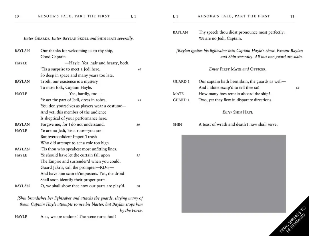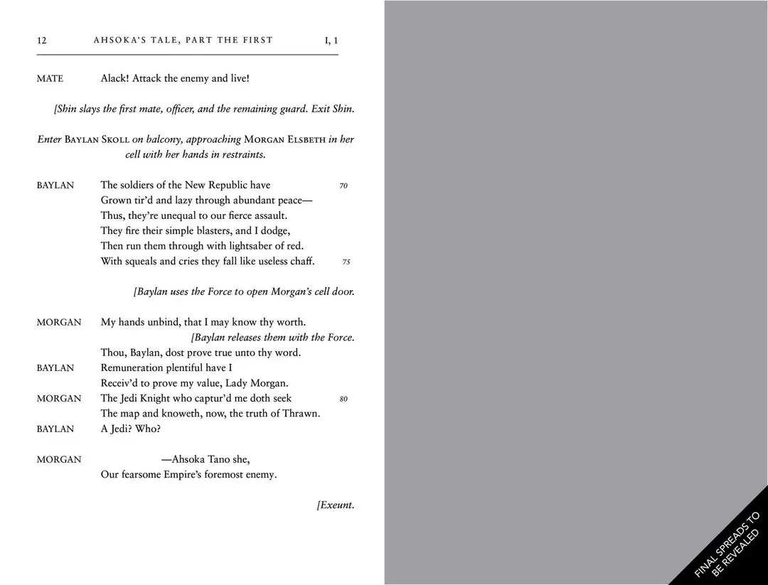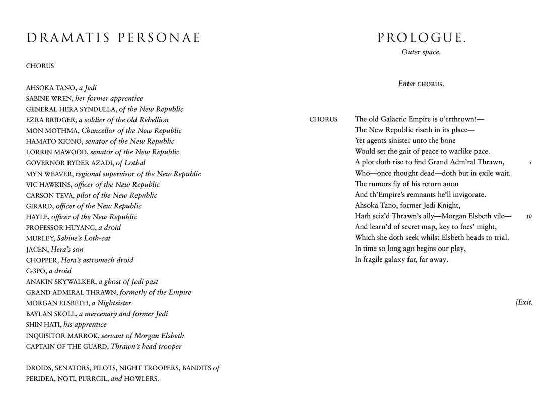 Pochi giorni fa è stato rivelato che il 6 settembre 2026 uscirà l’adattamento shakespeariano della prima stagione di Ahsoka, intitolato William Shakespeare’s Star Wars: Ahsoka’s Tale. Questo adattamento è scrito da Ian Doescher e illustrato da Dennis Przygodda e avrà un prezzo di 21.99$.