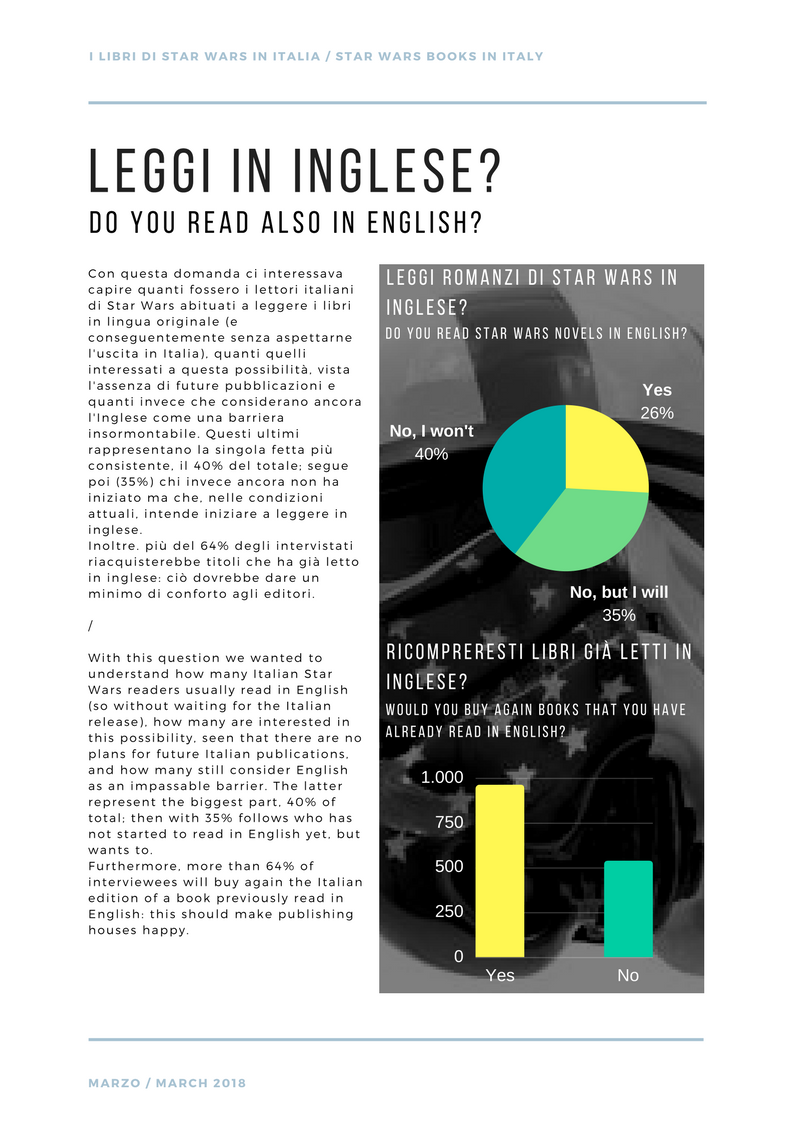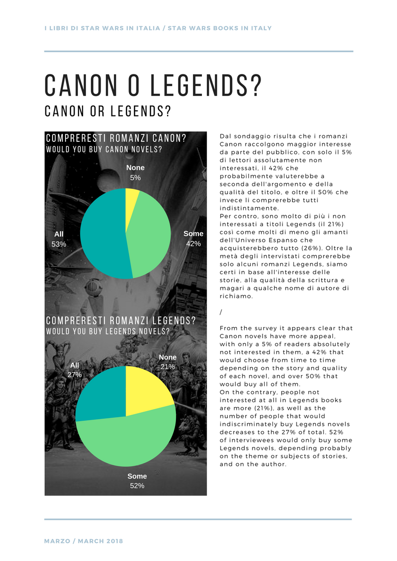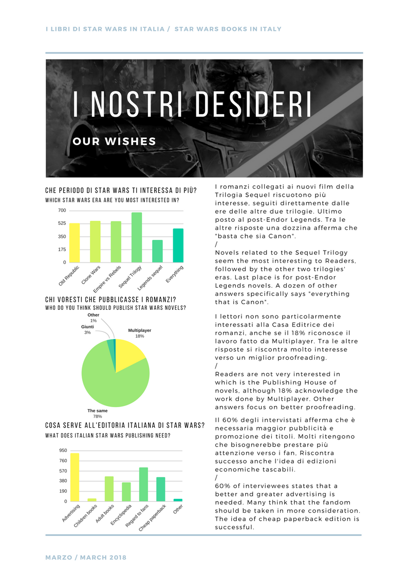 I risultati sono decisamente interessanti e speriamo vivamente possano essere tenuti in considerazione – mal che vada avremo solo perso un po’ di tempo libero. Per approfondimenti, chiarimenti, per visionare i dati originali o contattarci formalmente in merito vi invitiamo a scriverci alla nostra mail starwarslibricomics@gmail.com.