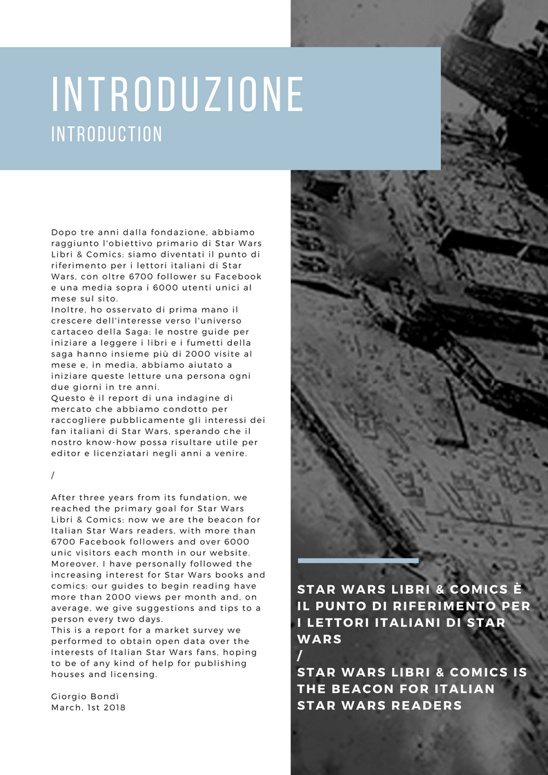 Sia chiaro che nessuno ci ha chiesto di fare niente, che le domande sono state stabilite da noi della redazione e il report totalmente compilato dal sottoscritto Giorgio Bondì, fondatore e amministratore di Star Wars Libri & Comics. Come fan e punto di riferimento degli appassionati italiani di Libri di Star Wars, ci sembrava doveroso dimostrare la nostra dedizione all’argomento.