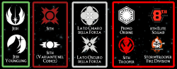 Una infografica molto ricca contenente tutti gli stemmmi e i loghi di organizzazioni, governi, compagnie e gruppi militari presenti nel Canone di Star Wars.