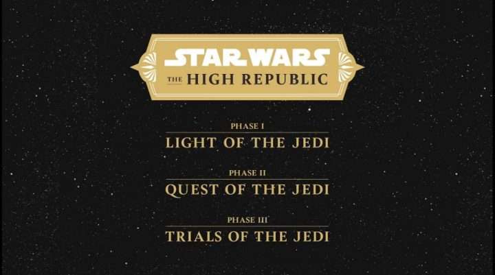 Il progetto de L’Alta Repubblica è diviso in tre fasi: Light of the Jedi (che è durata dal gennaio 2021 a marzo 2022, divisa in tre wave di opere), Quest of the Jedi (ambientata 150 anni prima della Fase I e che incomincerà a ottobre 2022) e Trials of the Jedi. Ogni fase comprende diverse opere, di diversa tipologia e per diverse fasce d’età.